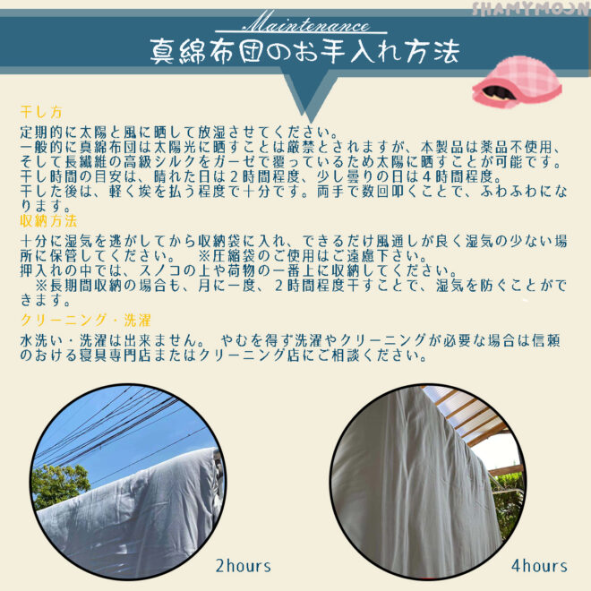 | 組成 | 中綿 シルク100% 側地 コットン100% |