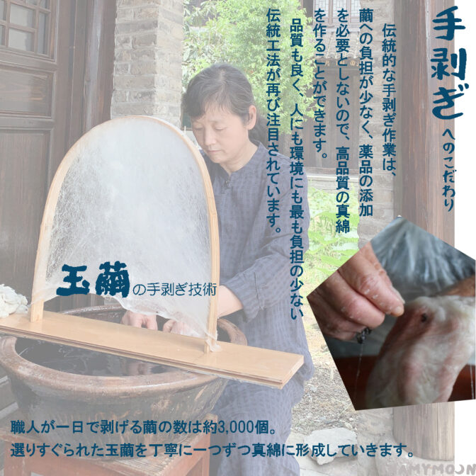 ※漂白・染色をしない製品となりますので、多少の色ムラ、蚕屑、綿屑などがございます。
