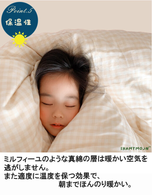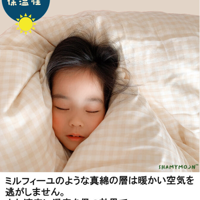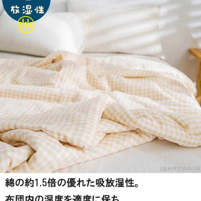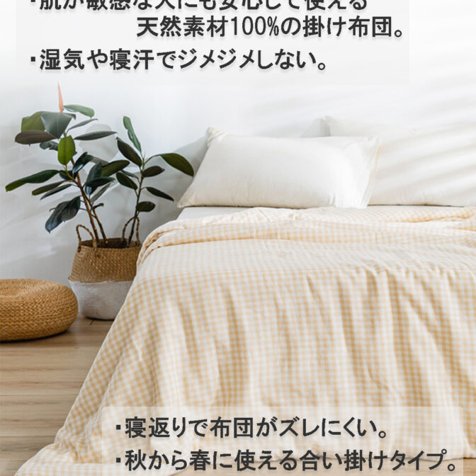 春、秋には一枚で、冬には毛布の代わりにちょうど良い掛けふとんです。