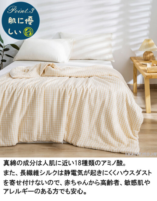 シルク・オーガニックコットンなど寝具や紫外線対策アイテムなど