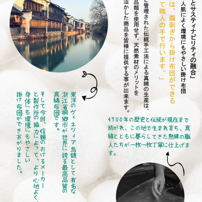 天然素材の寝具・アパレルの企画販売を行っています。