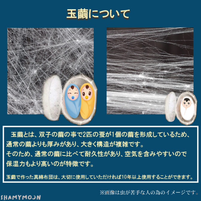※漂白・染色をしない製品となりますので、多少の色ムラ、蚕屑、綿屑などがございます。