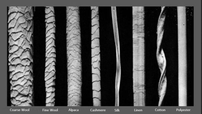 また、繊維を糸に撚(よ)った場合、その撚りが多いほど肌への刺激が強く、繊維の断面が△形状のものは断面が丸い繊維よりも曲げにくく、伸びにくいので刺激が強くなります。また毛羽立ち安いのも特徴です。ウールなどは繊維が太く毛羽立ちやすいのでチクチクと刺激が強い傾向にあります。